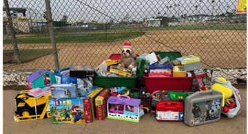 December was a big month of community involvement, with the Hilltoppers hosting their first Stuff the Dugout for Santa toy collection drive. Our generous group donated more than 115 toys to Rady Children's Hospital and Ronald McDonald House, spreading joy and holiday cheer to those in need of it most.